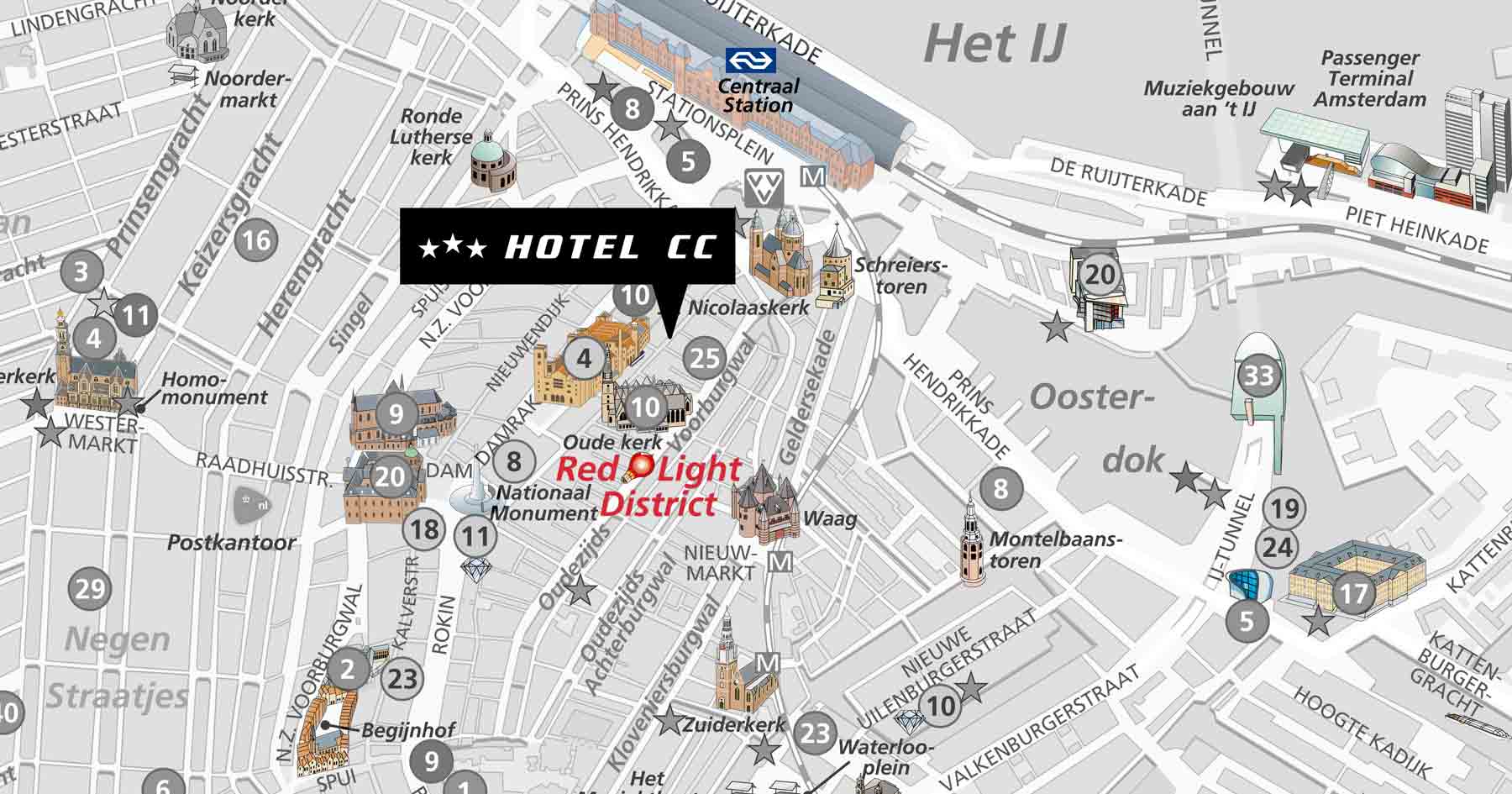 Hotel CC Amsterdam, a canal side boutique hotel situated in the heart of the City Center with stone’s throw distance from the central station and Red-Light District. Major tourist attractions; the Dam Square-the Royal Palace, Anne Frank House, Madame Tussauds, Flower Market, Shopping District Nieuwendijk-Kalverstraat are within short walk distance. Furthermore, in the surroundings there are variety of restaurants, cafes, bars and coffeeshops.